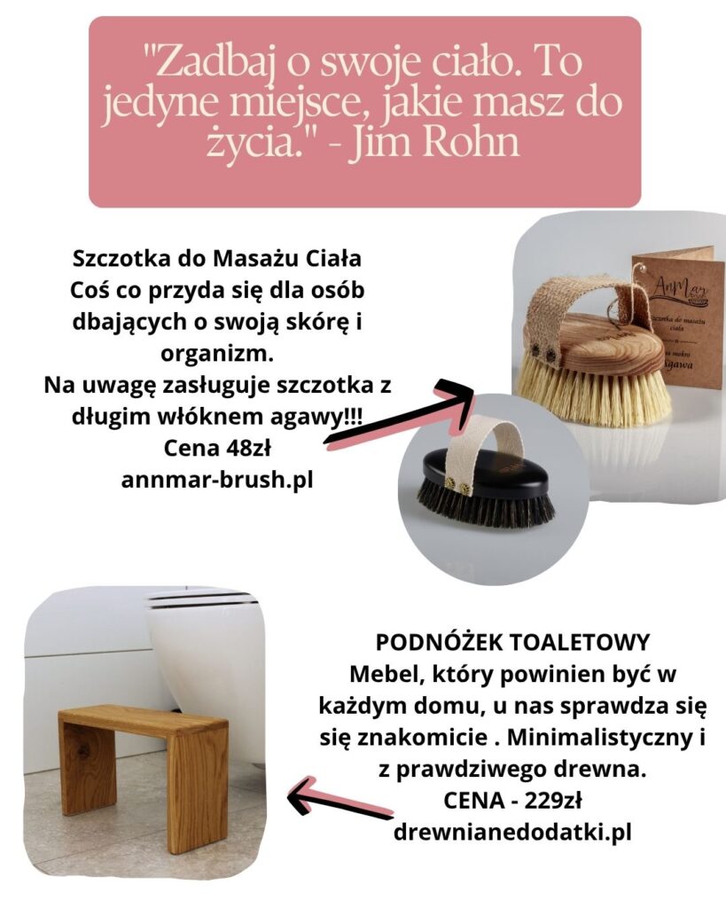 • Szczotka z długim włosiem lub zestaw do masażu ciała polskiego producenta – @anmar_brush (znajdziesz TUTAJ)