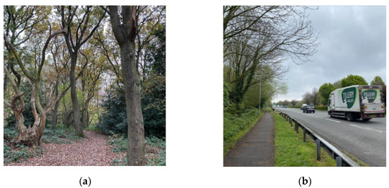 W jednym z badań badano wpływ spaceru w naturalnym środowisku (a) i w zielonej przestrzeni miejskiej (trasa spacerowa przy drodze z ruchem ulicznym) (b) .